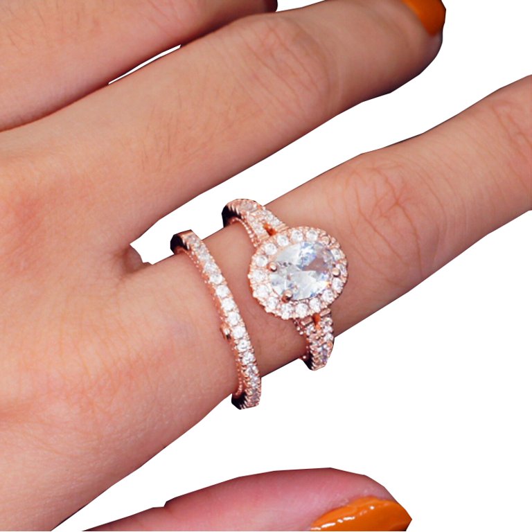 Women 925 Silver Rose Gold Round Cut Cz Wedding Band Engagement Rings Set S 6 10 Walmart Com